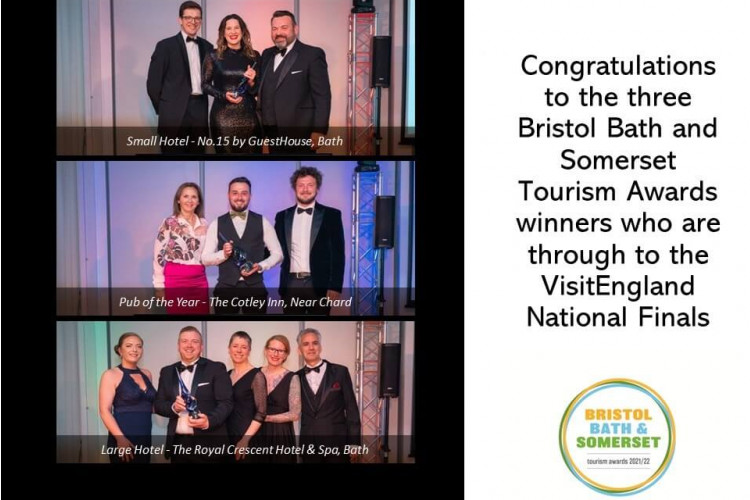 VisitEngland has announced the finalists who will go forward to compete for the tourism industry’s annual national Awards for Excellence and three businesses from the 2021/22 Bristol, Bath and Somerset Tourism Awards have made it through: Large Hotel – The Royal Crescent Hotel & Spa, Bath, Small Hotel – No.15 by GuestHouse, Bath and Pub of the Year – The Cotley Inn, Near Chard. They will have to wait until the national awards ceremony on 8 June at the Library of Birmingham, to find out if they win Gold, Silver or Bronze.